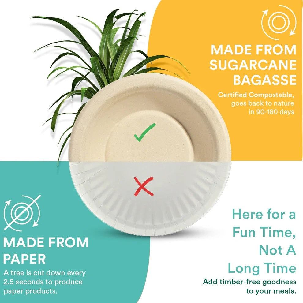 These eco-friendly disposable bowls are made of all-natural, bio-based materials free from harmful chemicals. Certified compostable.