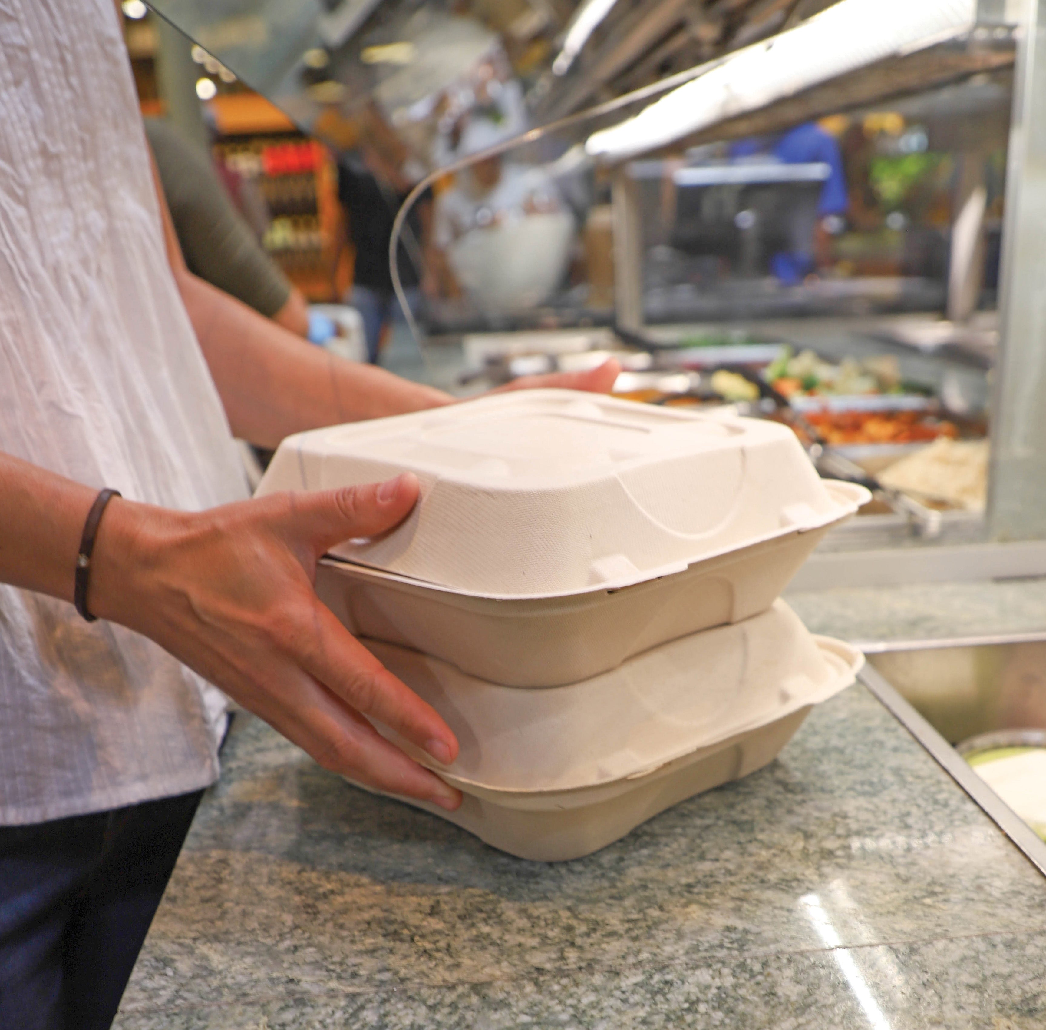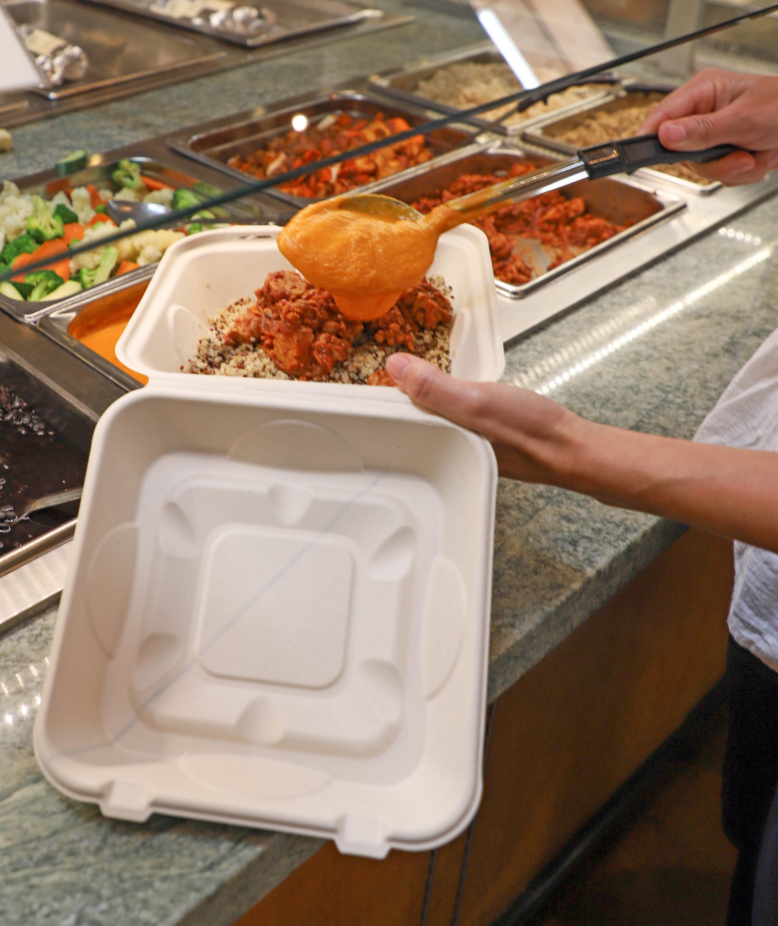 This one compartment 9"x9"x3" World Centric® fiber clamshell is made from bamboo and unbleached plant fiber, and no added PFAS. Suitable for hot and cold foods, making it perfect for restaurant take-out, food trucks and cafes. These containers are freezer safe and contain no wax or plastic lining.
